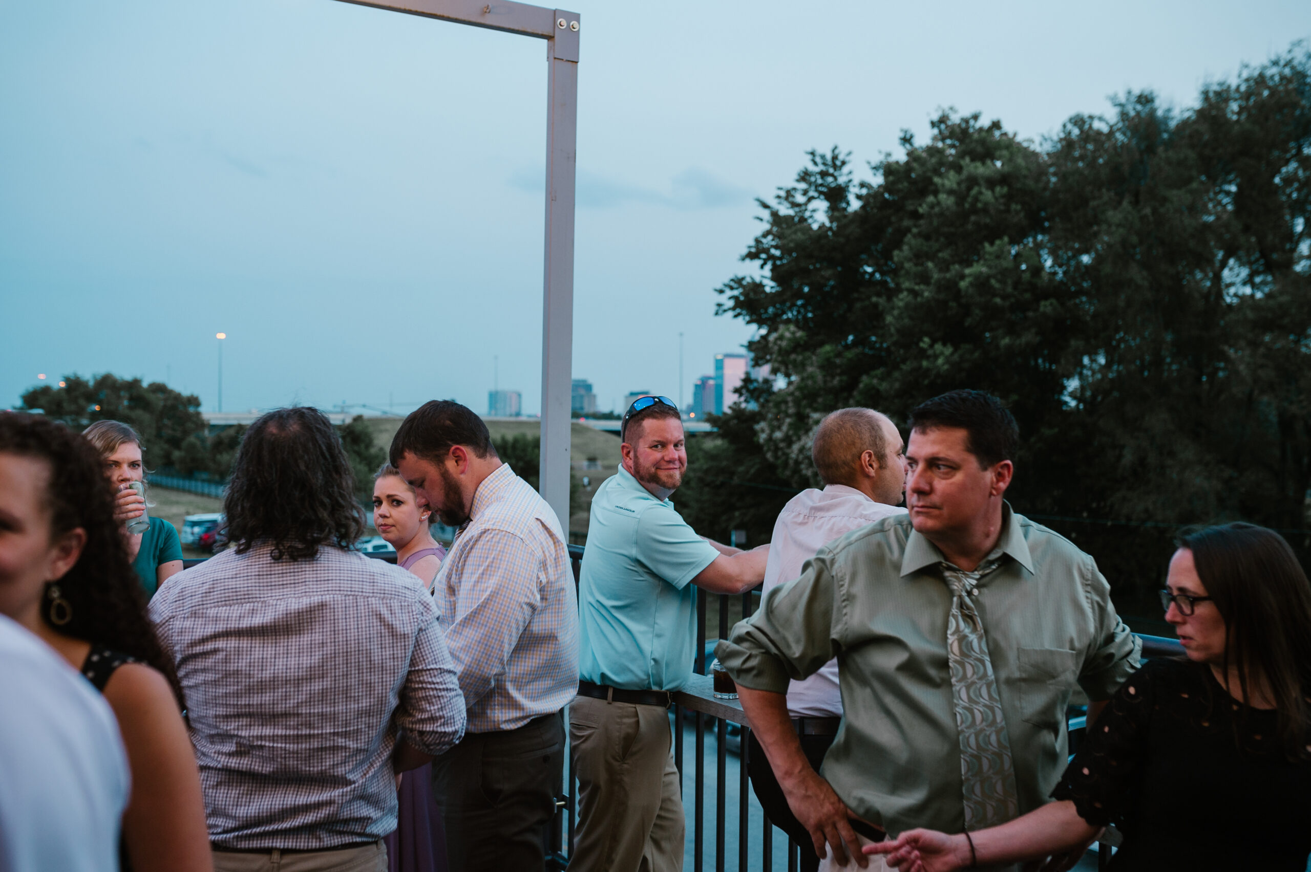 Step out from the green room and you’ll find a small veranda, strung with café lights and overlooking the neighborhood and skyline. It’s a favorite spot for couples’ portraits, quick breathers during a busy event, and small breakout conversations.